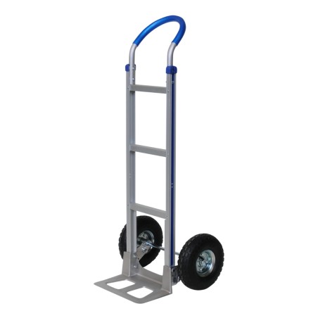 Il est équipé de roues pneumatiques. Ces roues sont parfaites pour un plus grand confort et une utilisation sur différents types de terrains. Si toutefois vous recherchez un diable plus robuste et sans risque de crevaison, alors nous proposons un diable multi usages en aluminium 200kg avec des roues pleines.