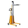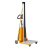Son plateau de 470 x 600 mm se lève électriquement, jusqu'à 1500 mm, à l'aide d'un boîtier de commande situé sur le manche du gerbeur.