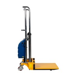 Parfaite alliance entre un gerbeur et une table élévatrice, ce mini gerbeur semi électrique est robuste, stable et très maniable grâce à ses deux roues fixes à l'avant et ses deux roues pivotantes à l'arrière munies de freins.
