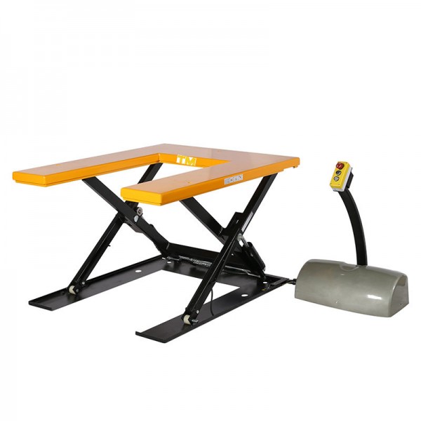 La table élévatrice électrique en « U » TMELTU10220 permet d’améliorer les conditions de travail et le confort d’un manutentionnaire et de mettre à niveau des marchandises jusqu’à 850 mm au-dessus du sol.