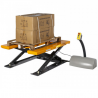 Table élévatrice électrique en forme E, idéale pour lever et palettiser jusqu'à 1000 kg en toute sécurité, avec une hauteur d'élévation réglable jusqu'à 850 mm.